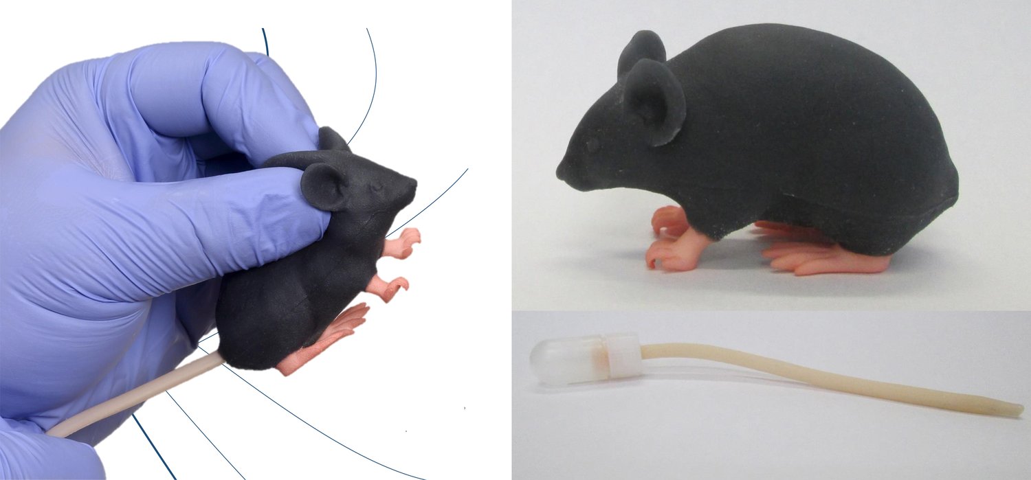 El ratón Mimicky está pensado para prácticas de inyección y extracción en las venas coccígenas.